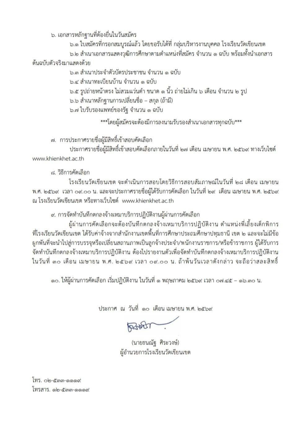 โรงเรียนวัดเขียนเขตมีความประสงค์จะรับสมัครบุคคลเพื่อจัดจ้างเป็นลูกจ้างชั่วคราว เพื่อปฏิบัติหน้าที่สนับสนุนการดูแลนักเรียนให้ได้รับโอกาสทางการศึกษาอย่างเต็มศักยภาพ โดยมีรายละเอียดดังนี้: